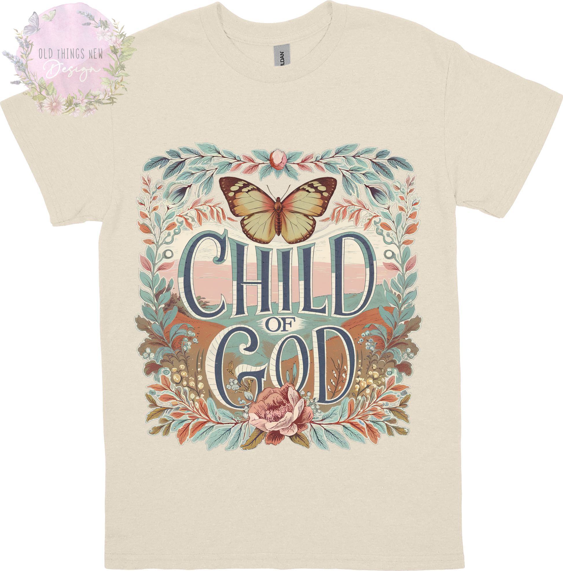 Celebrate your identity with the Child Of God Adults T-Shirt, featuring delicate florals and a graceful butterfly design. This shirt beautifully conveys the truth of who you are, reminding you of your unique and cherished place in the world. Comfortable and stylish, it’s perfect for expressing your faith with elegance every day.