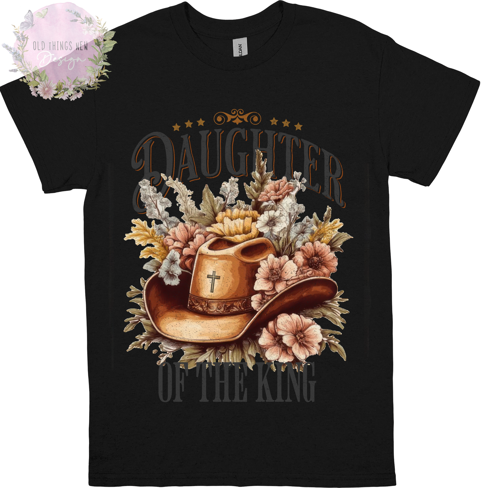 Step into your confidence with the Daughter Of The King Adults T-Shirt, designed with a bold western flair. This tee proudly declares your identity and heritage, reminding you to know who you are and whose you are. Made for those who embrace strength and faith, it combines style and meaning to empower your everyday look. Wear it as a statement of your royal lineage and unshakable sense of self.