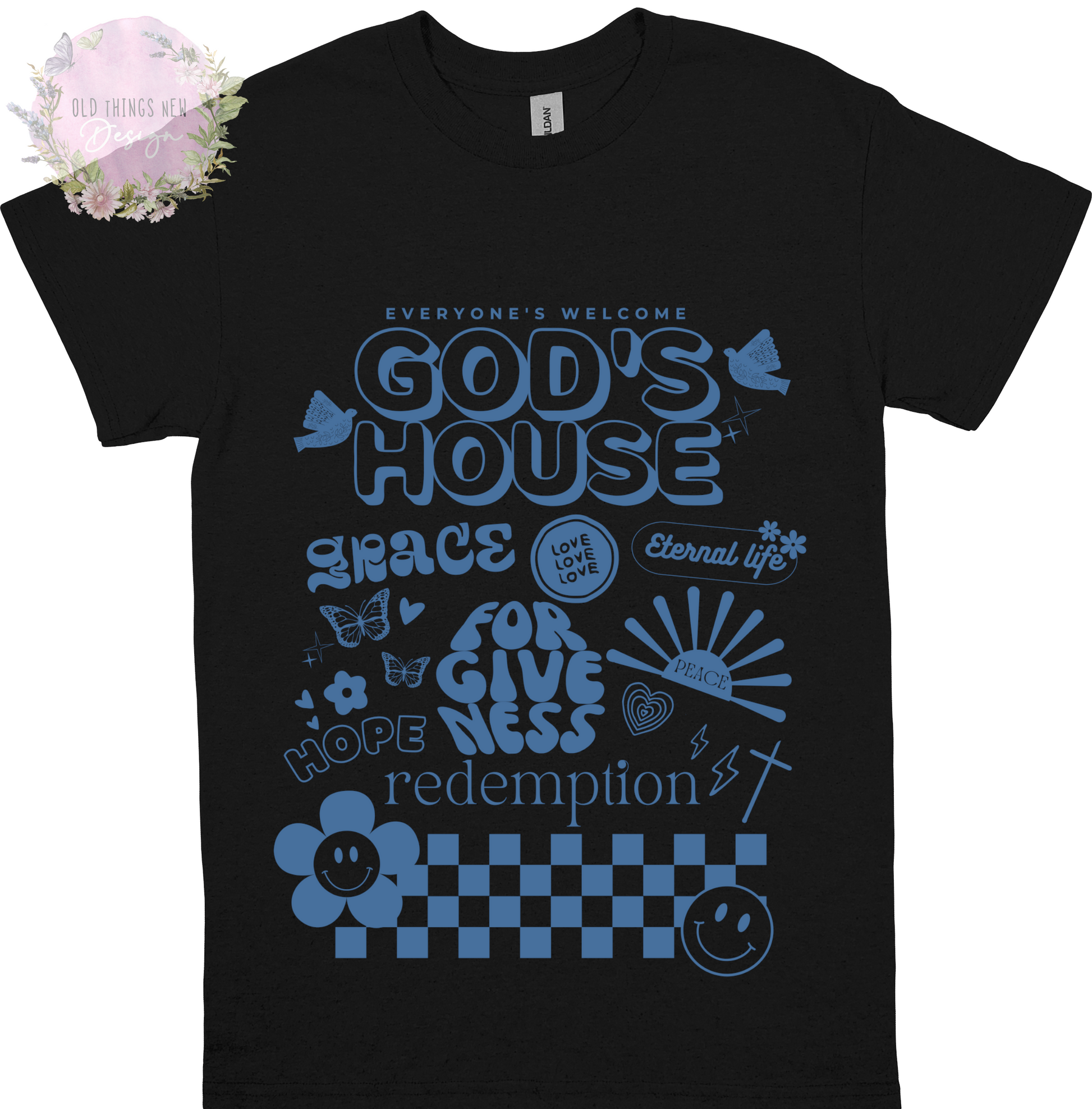 Experience ultimate comfort and style in our God's House T-Shirt. With a retro design and multiple color options, this tee is perfect for everyday wear. Show your faith with confidence and comfort.