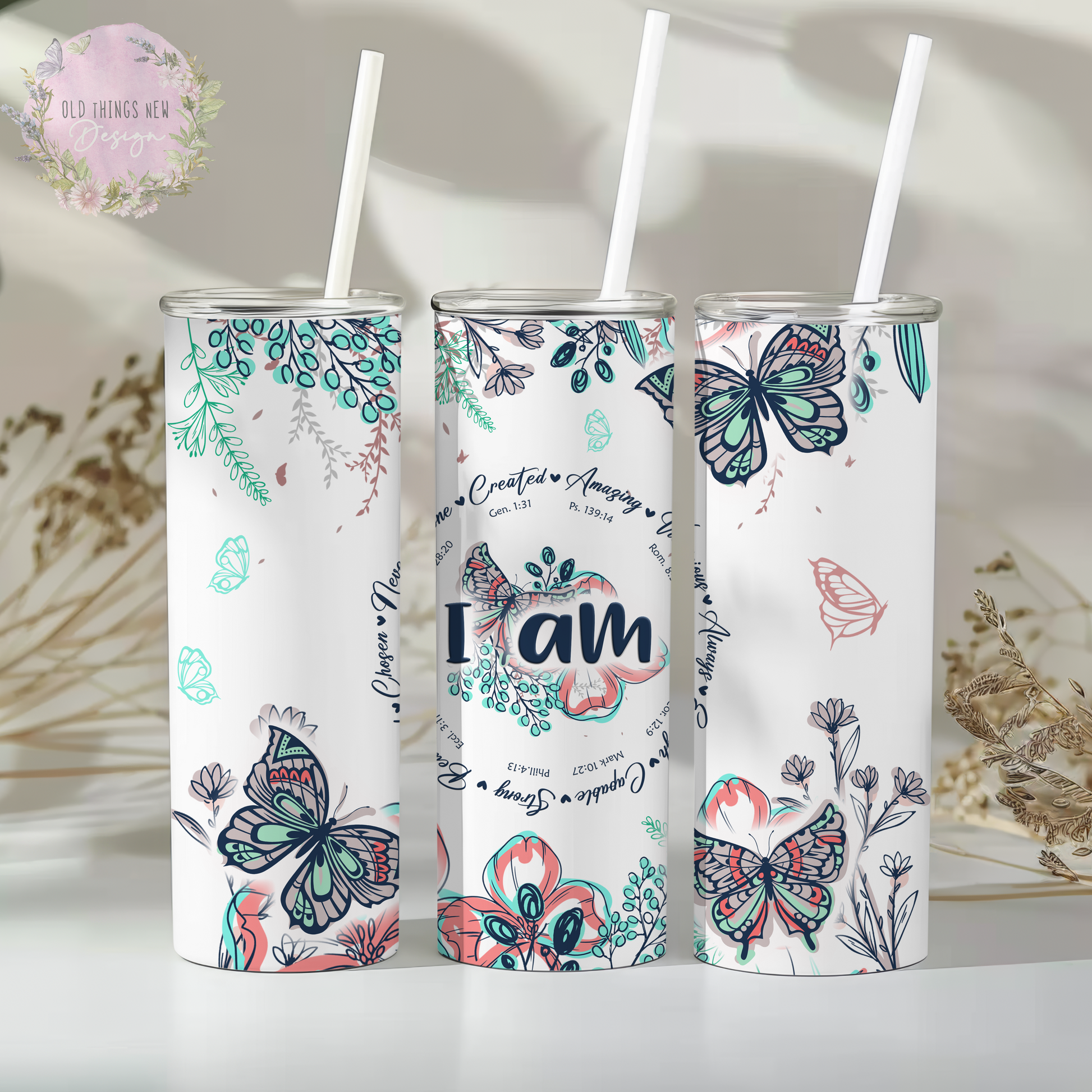 💗This tumbler features a boho butterfly design with referencing to encouraging bible verses to remind you of who you are in Christ"💗