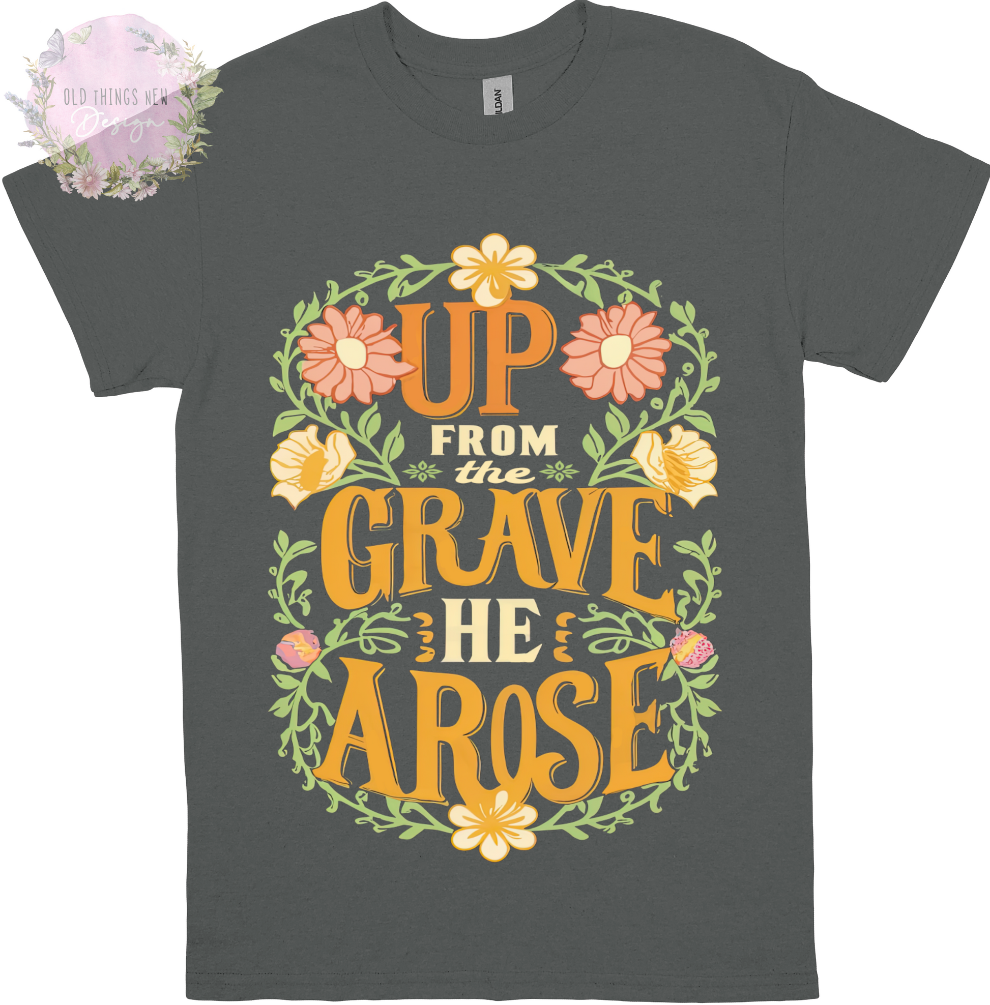 Celebrate the resurrection of Jesus Christ with the Up From The Grave He Arose T-Shirt. Its bright and floral design features the title of the traditional Easter hymn, a cornerstone of Christian faith. Join the timeless celebration of rebirth and renewal with this unique shirt.